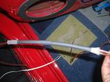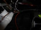 Dafür habe ich ein 2x1,5 mm2 Kabel in ein Kunststoff-Geflecht-Schlauch verlegt, die Verbindungen wurden gelötet und mir Schrumpfschlauch isoliert.