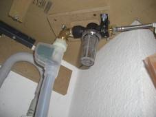 Ich habe den Anschluss mit einem Panzerschlauch unter die Arbeitsplatte verlegt und gleich noch um einen Feinfilter ergänzt.